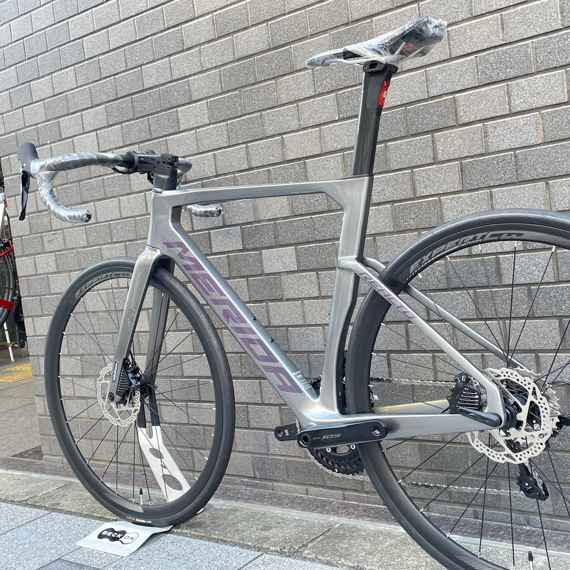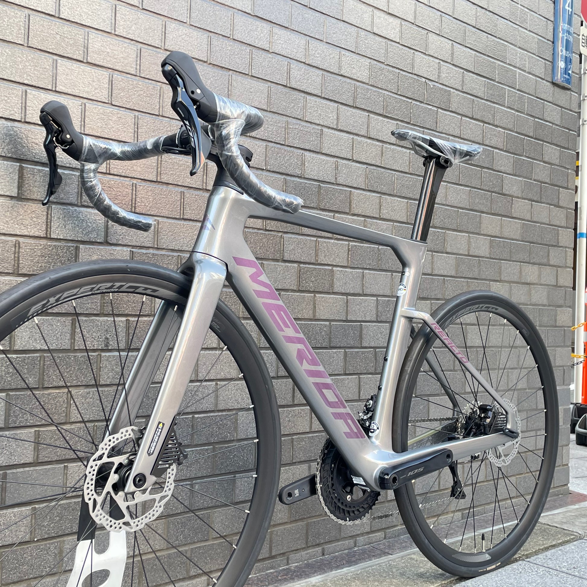 チーム仕様と同じジオメトリーを持つREACTO CF3 Ⅳカーボンフレームに、リヤ12速となった機械式の新型Shimano 105を搭載。自社で設計から製造までを行うマニファクチャーブランドであるMERIDAならではの、フォークやシートピラー、そしてフレームの作り込みを持つエアロロードバイク。