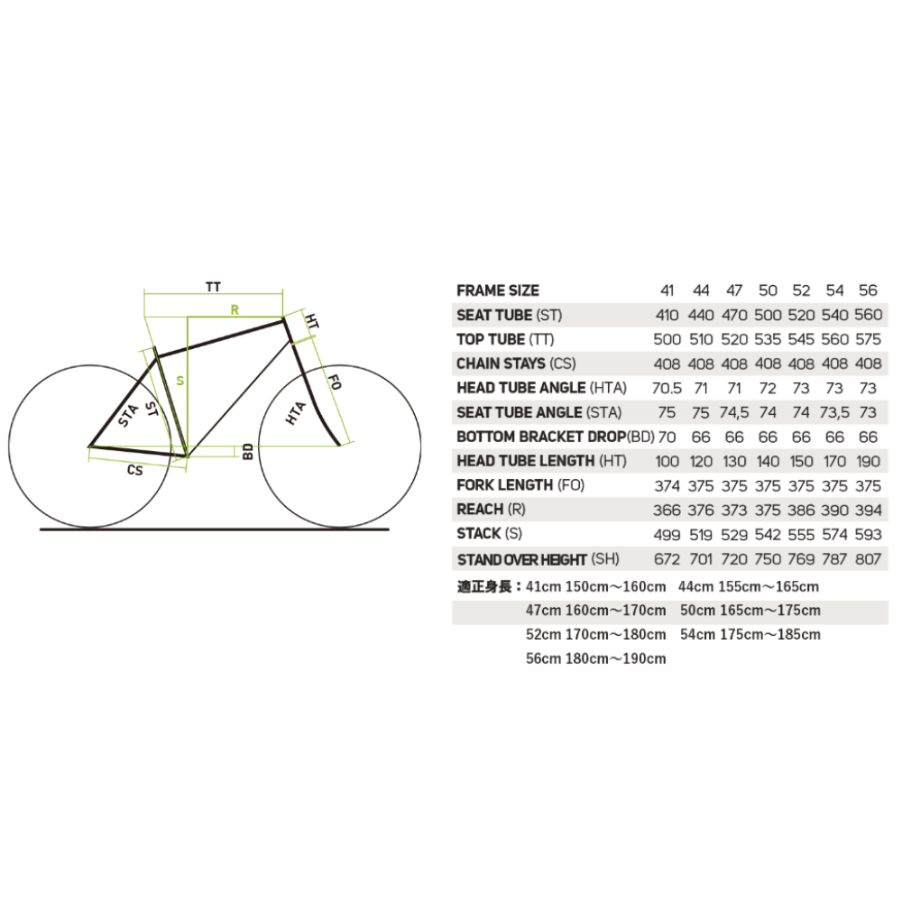 L:70mm(41cm) L:80mm(44cm) L:90mm(47/50cm) L:100mm(52/54cm) L:110mm(56cm)