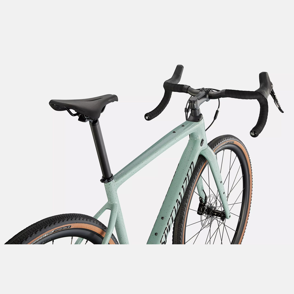 グラベルライドは「新しい」スポーツかもしれませんが、Diverge Sport Carbonは40年以上の経験をもとに開発されました。Future Shock 1.5とFACT 8rカーボンフレームを採用し、舗装路、ダート、砂利で厚く覆われたグラベルを速く、自信を持って快適に走れます。グラベルライドに適したSRAMの1x11のApex1シフティングとDT Swiss G540ホイールを備え、高レベルの走破性と多才な走りを実現。S-Works Divergeにも搭載される、アンバウンドグラベル(レース)で勝利を収めたPathfinder Pro 42mmタイヤのおかげで、思う存分速く遠くまで走れます。